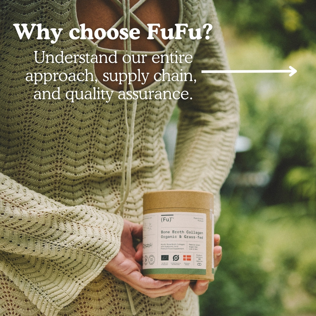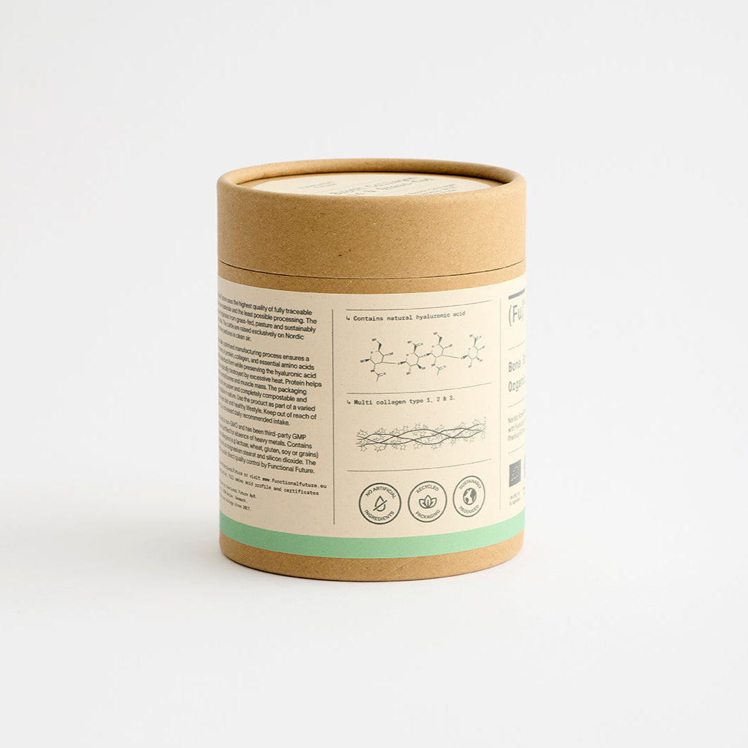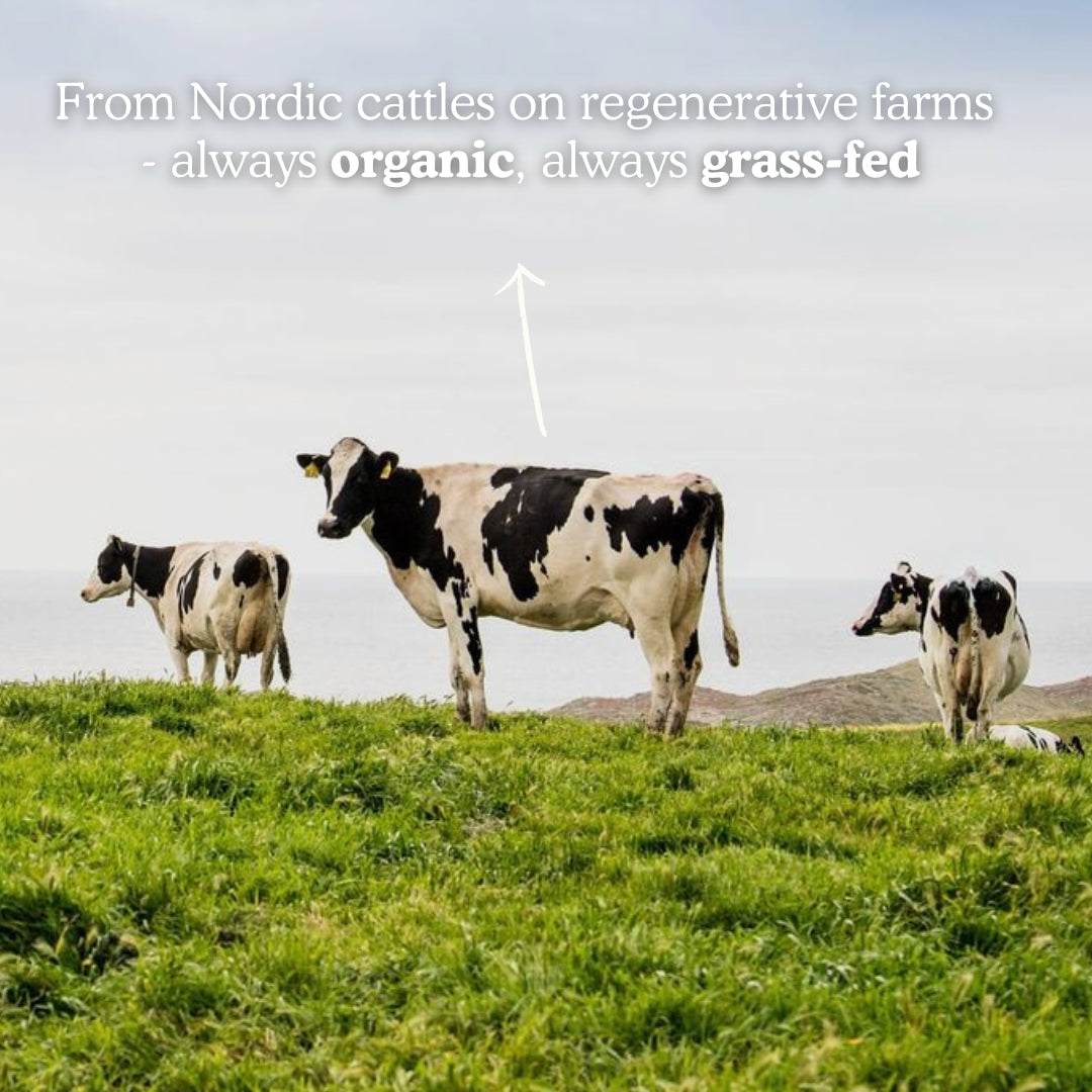 Our organic bone broth collagen powder is carefully crafted from collagen and hyaluronic acid derived from grass-fed Nordic cattle. Developed in collaboration with Danish farmers and technology experts, the product reflects our deep commitment to purity, sustainability, and transparency.